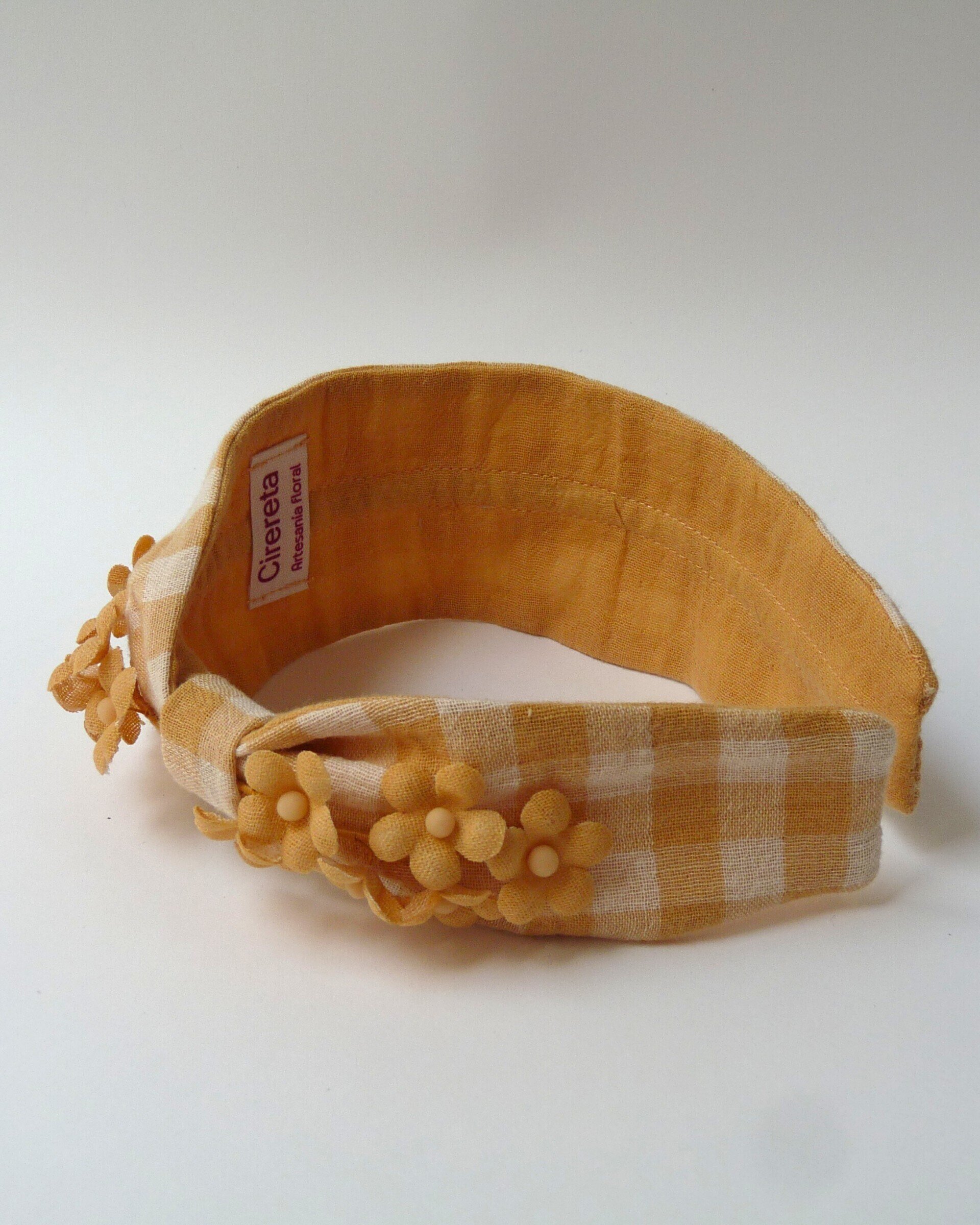 Diademas con fruncido lateral y un delicado aplique de florecillas hechas a mano. Pequeñas, sencillas y llenas de encanto, estas flores de cinco pétalos con centro de porcelana nos recuerdan que lo simple también puede emocionar.